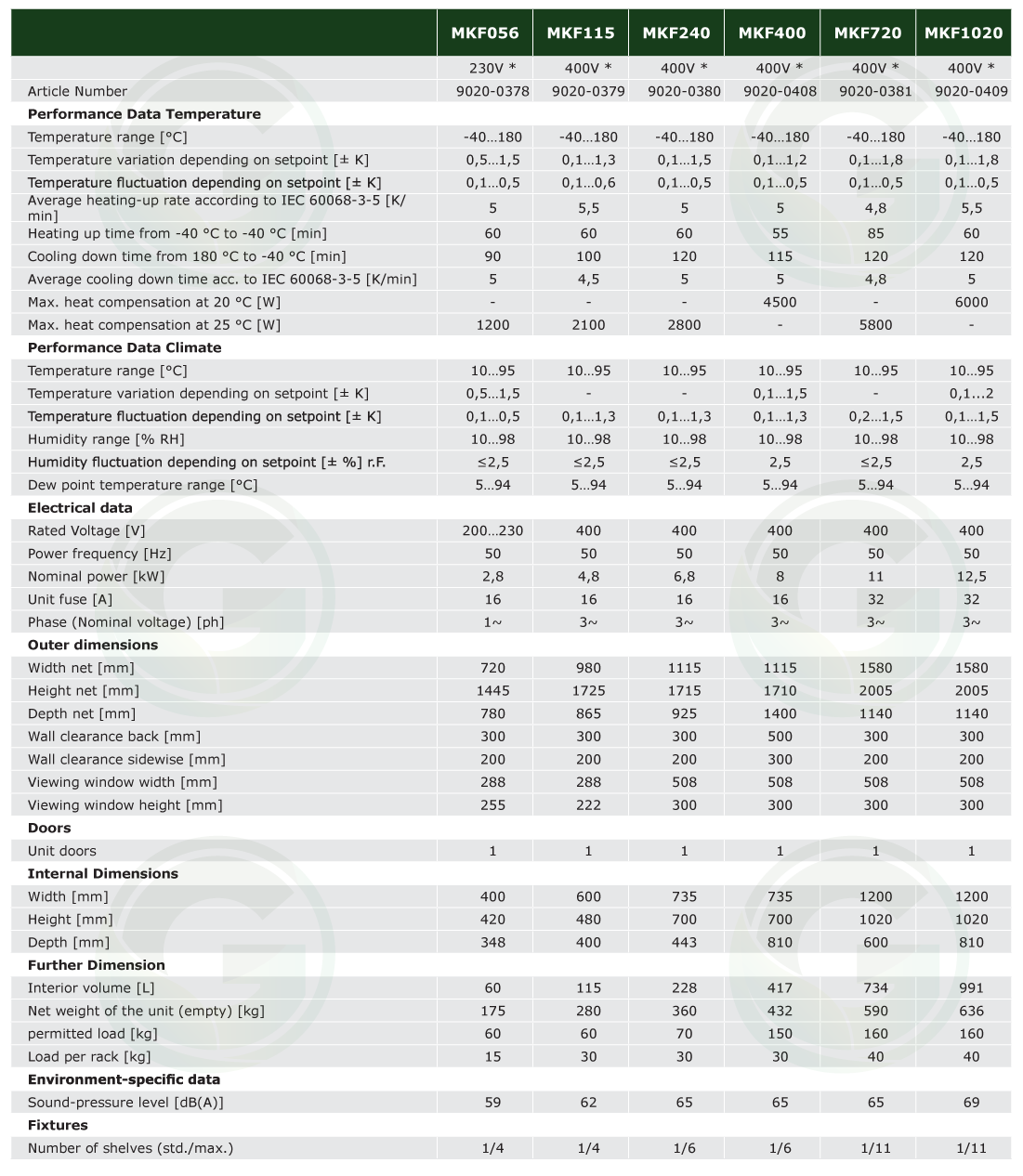 A MKF series environmental simulation chamber is ideally suited for any cold and heat testing based on current temperature and climate testing methods according to DIN and IEC standards. The comprehensive standard equipment for this environmental simulation chamber ensures ease of operation.
