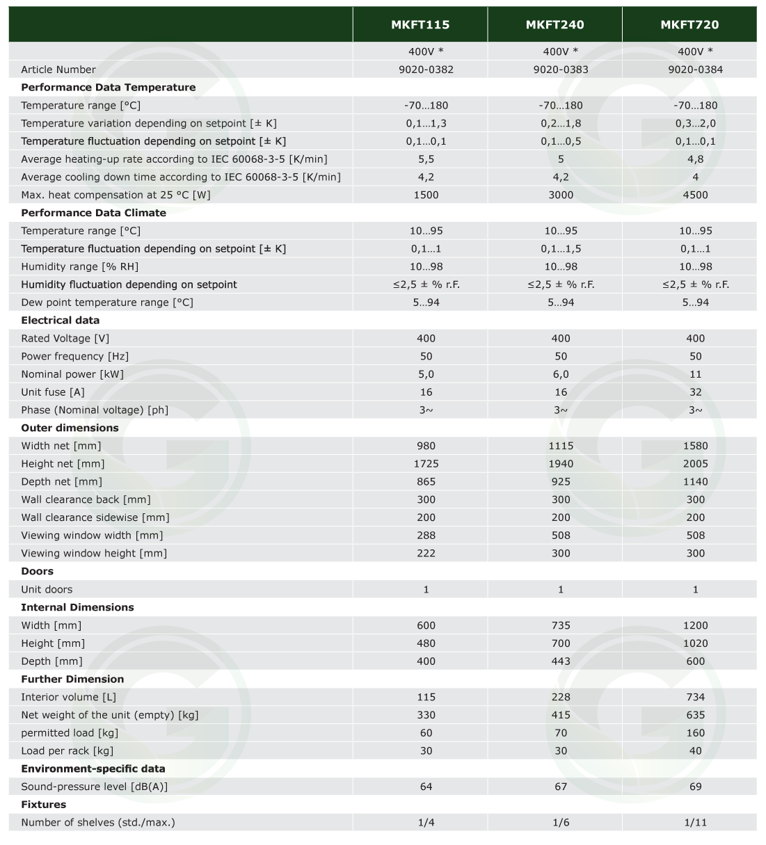 The environmental simulation cabinet of the MKFT series is the specialist for dynamic climate changes between -70 °C and 180 °C. Large power reserves and fast cooling make it a high-class product for complex standard-compliant climate tests.