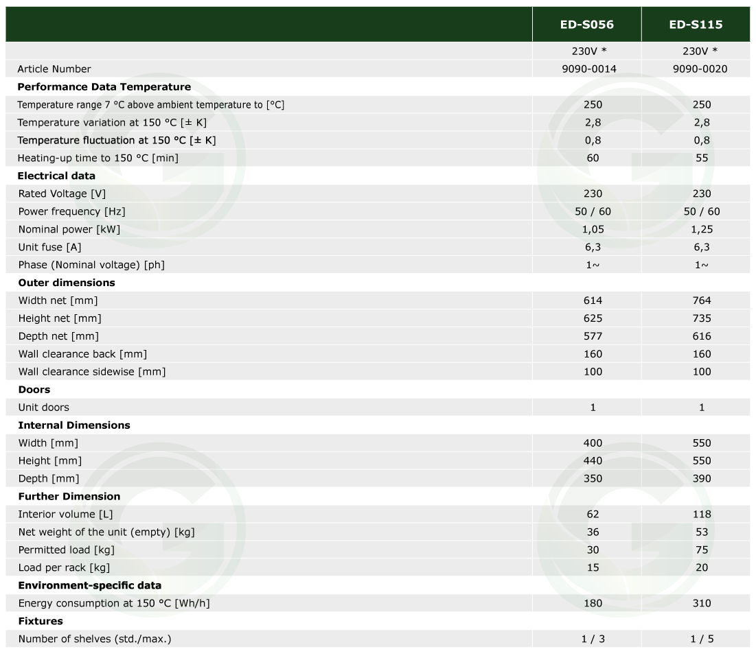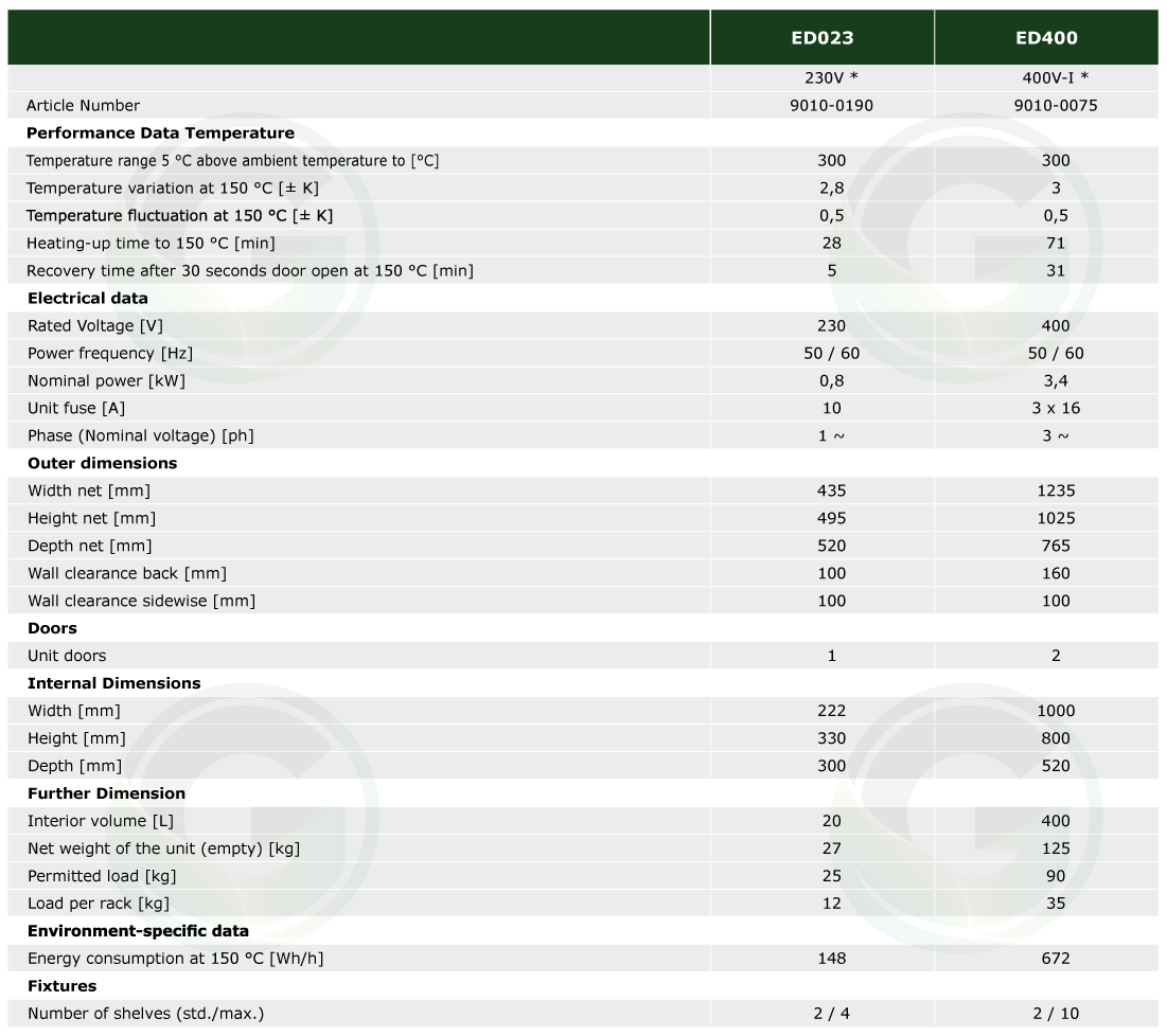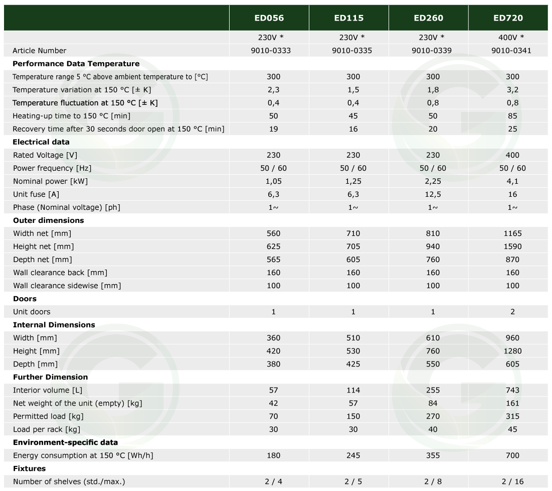 2. Series ED: Drying and heating chambers Avantgarde.Line with natural convection