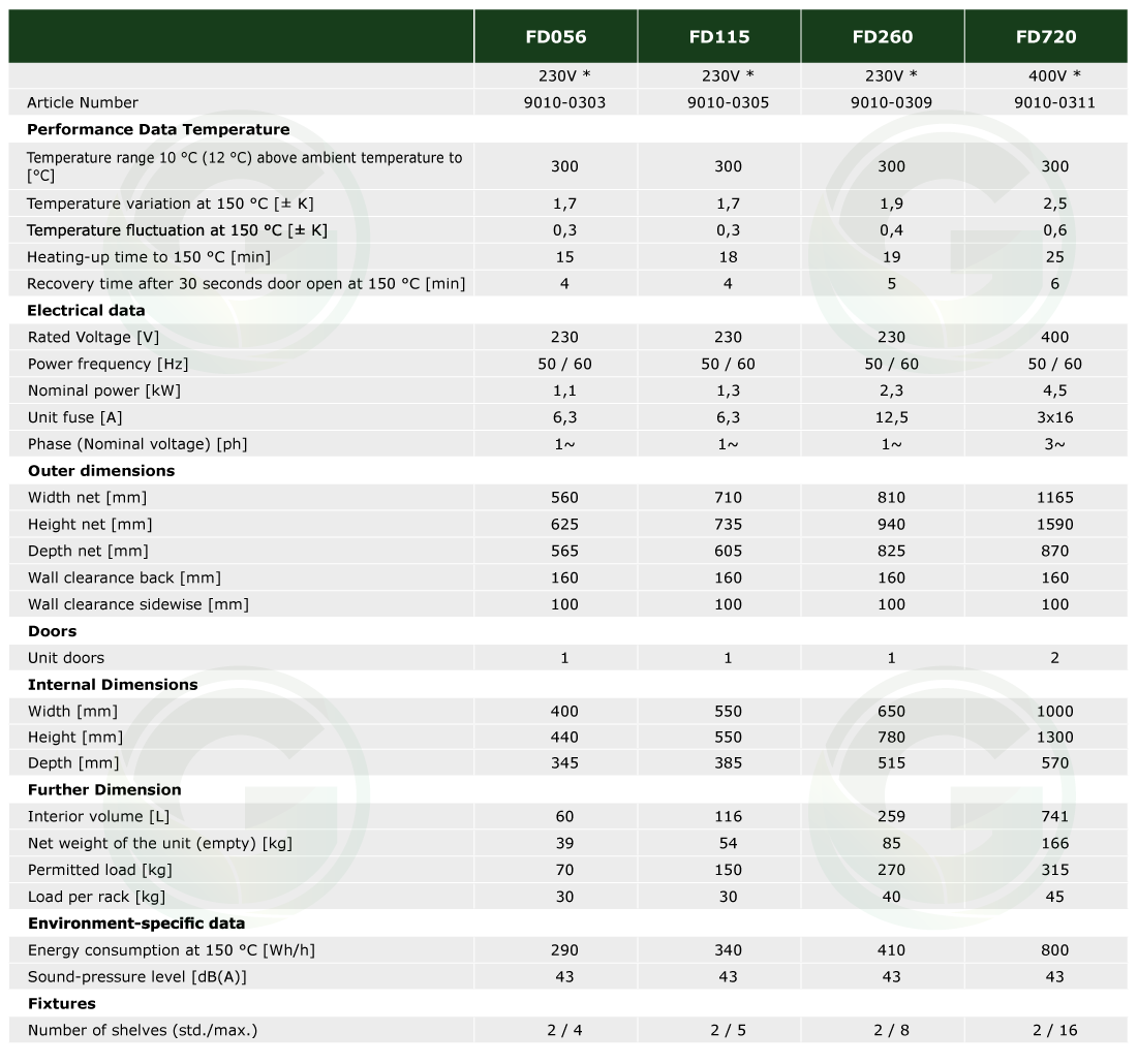 1. Series FD: Drying and heating chambers Classic.Line with forced convection