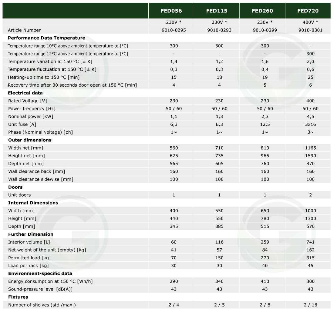 Heating chambers of the FED series provide almost unlimited capacity and are particularly adaptable. With advanced timing functions and 2 adjustable fans, temperature and convection conditions are easily controlled.