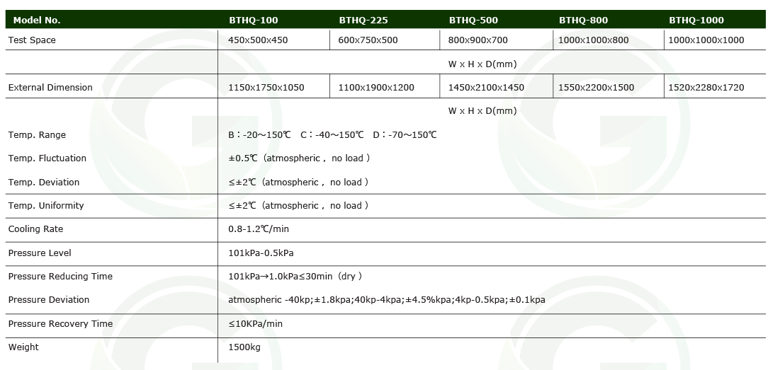 The storage and transportation reliability test can be carried out under the single or simultaneous action of high and low temperature and low pressure, and the test piece can be energized to test the electrical performance parameters at the same time.
