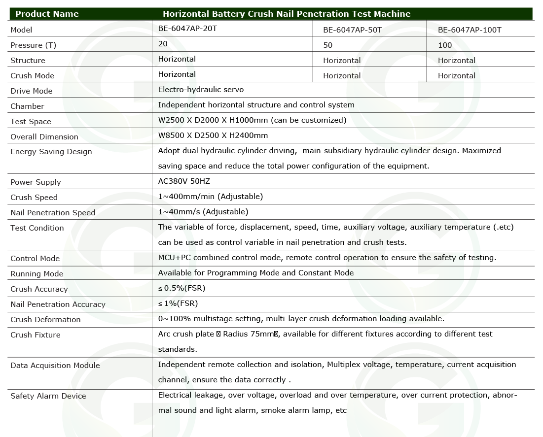 Horizontal Battery Crush Nail Penetration Test Machine Main Feature