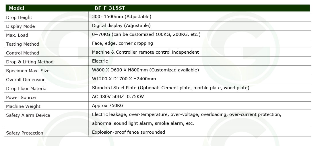 BF-F-315ST has the ability to precisely control the drop height in the test chamber, making test data more accurate.