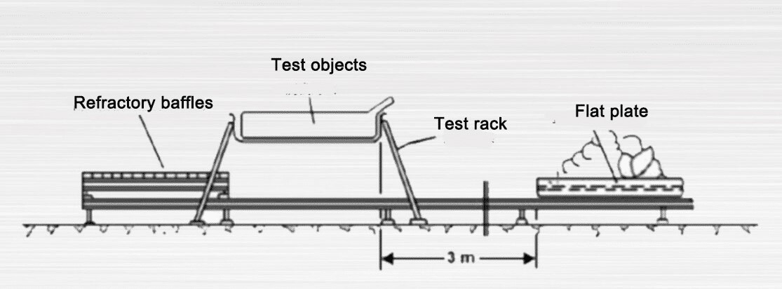 Ignite the gasoline at least 3m away from the test object, and after 60 seconds of preheating, put the gasoline plate below the test device. If the gasoline flat plate size is too large to move, you can use the way of moving the test object and rack.