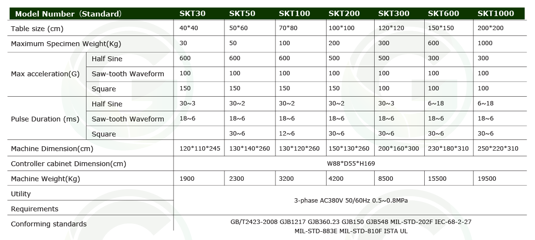 Suitable shock test for aviation, aerospace, marine, military, consumer electronics, automobiles, home appliances and display devices.