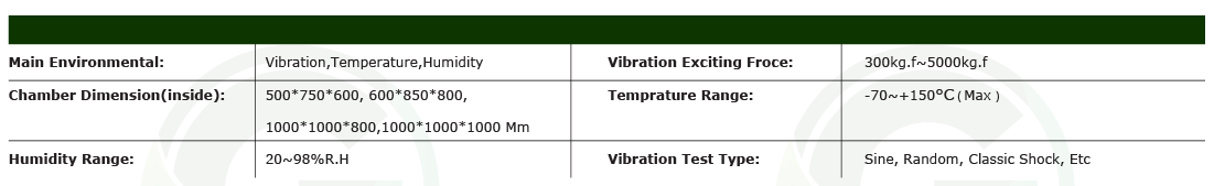 - Independent control system: can complete high temperature, low temperature, constant temperature, constant humidity, vibration test and integrated test.