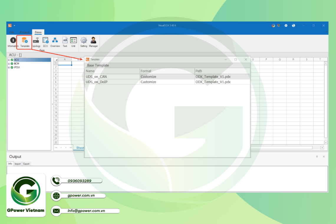 - • Customized ODX templates based on OEM's specifications, with odx-c/odx-cs/partial odx-d files included in the templates