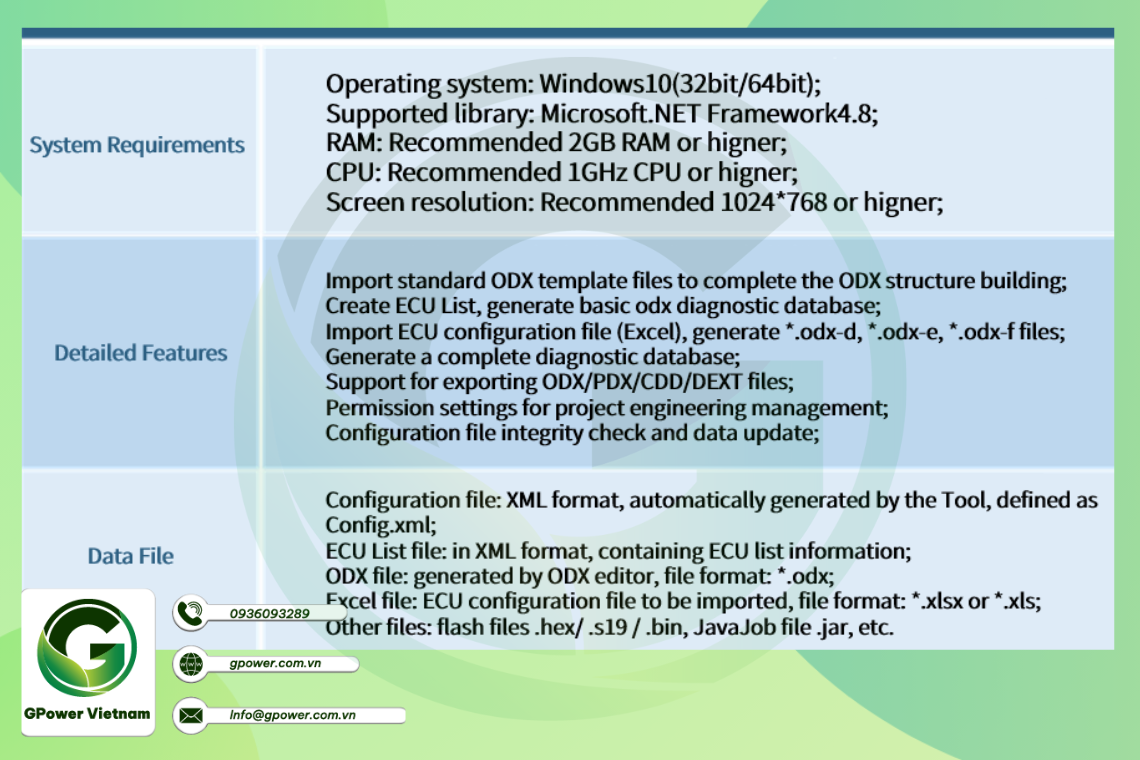 - • Follow the ASAM standard ODX templates and Excel templates combined with double checking, effectively guaranteeing the completeness and accuracy of the ge-nerated data